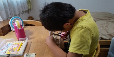 ![]() | Hが熱心に切っているのは・・・。 これだけ積極的にハサミを使ったの、初めて見たかも。 |