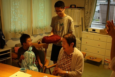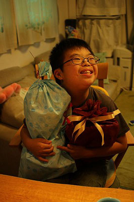 | 大きな包みを2つ抱えて大喜び。 |