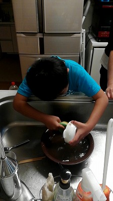 | 食器洗い。 |