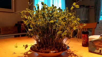 | 刈り取った後、2回目の豆苗。