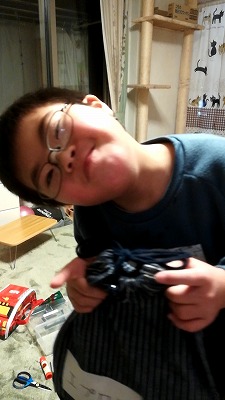 | ぬいぐるみに着けておくと、持ってきちゃうH。 |