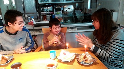 ![]() | 今日はお母さんの誕生日。 ケーキでお祝い。 |