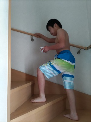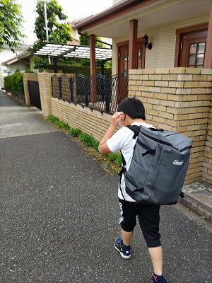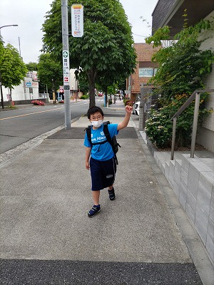 さ、マスクをつけて・・・。 いってらっしゃい! |