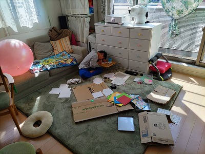 目覚めが良いのはいいのだが、こうも散らかされると・・・。