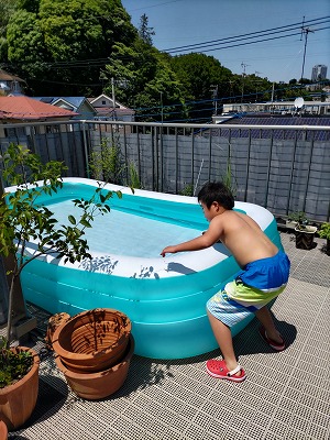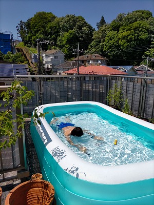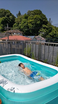 今日は良く晴れ暑い。 プール日和。 |