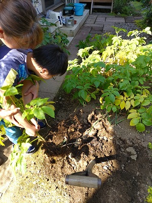 ジャガイモの収穫。 一部枯れ始めたし、来週から天気が悪くなるから。 |