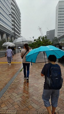 もんじゃが有名なとこなのに、雨風で歩くのもキビシイ。
