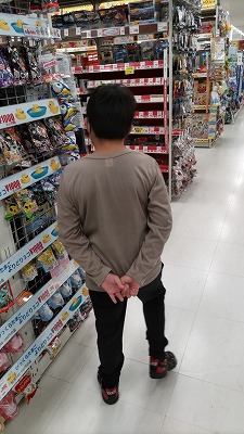 その後、用事を待つ間、Hはオモチャを物色し。 |