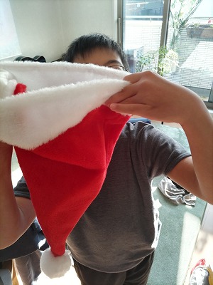 | 朝から、三角帽を被れと、Hが。 |