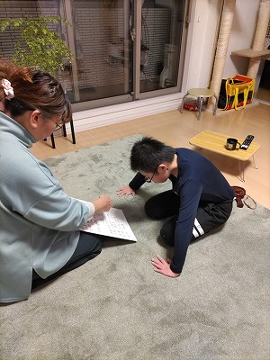 正座&手をついて、来月からの心得を神妙に聞くH。 |