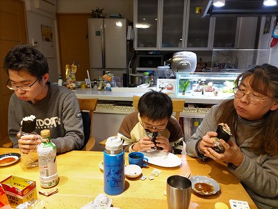 ![]() | そして豆まき。 今年も個包装。 後片付けが大変だから。 |