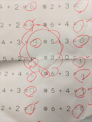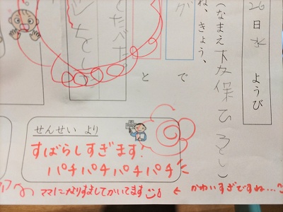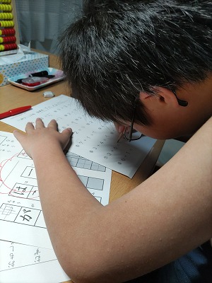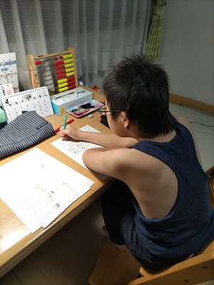 昨日の留守番時に、宿題もきちんとやっていたH。