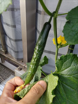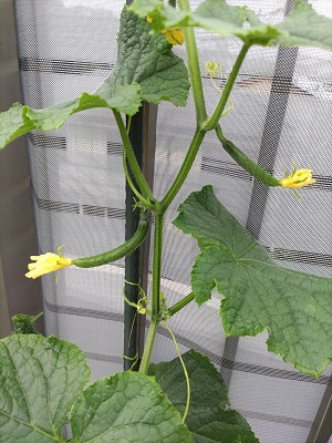 ![]() | まだ小さいキュウリは、無事。 この大きさのも美味しいんだけど。 |
