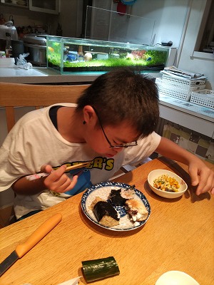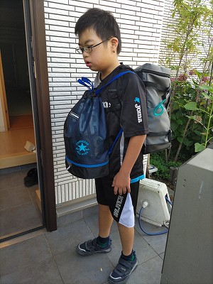 今日は学校の水泳がある。 足元見えないぞ、気を付けな。 |