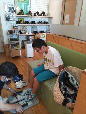次は、馴染みの靴屋さんで、サイズを確認してもらう。