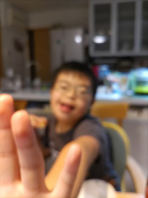 ![]() | 晩御飯。 手にも顔にも合ってないピント・・・。 |