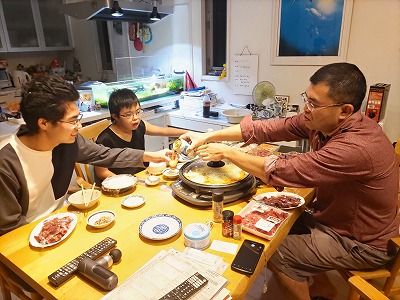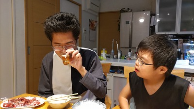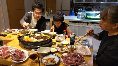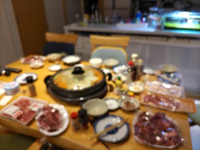 夕食は、豪華肉祭り。 ピンぼけ。 |