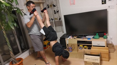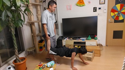 ![]() | 朝のランニング。 親の前だけ、 「オゥラァアア〜!」 としっかり走って、過ぎたらすぐテレテレ走りに・・・。 |