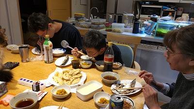 | 夜は高級魚のサンマ。