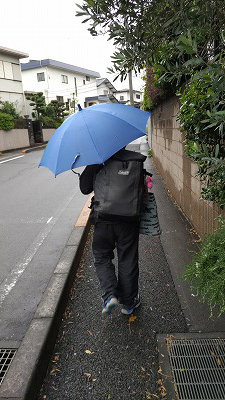 今朝は小雨。