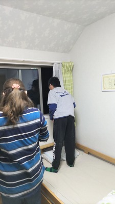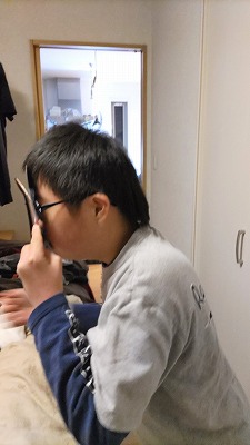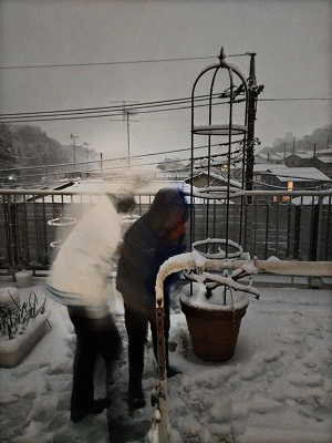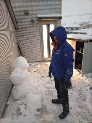 昨日の雪が残り、Hの学校は2時間遅れで始まることに。