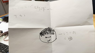 ![]() | H作、ニイニ。 バスケットボール、ねる。 する、だろ。 |