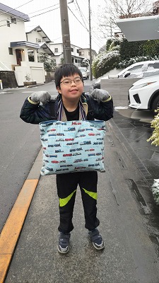 雪が残っているから、一緒に行く。 後姿が逞しくなったと思う。 |
