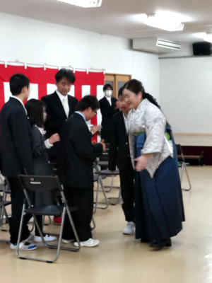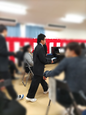 | 先生にお花をお花を渡す(準備)。 |