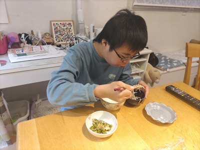 ![]() | 晩御飯。 Hが自分で用意した・ |
