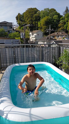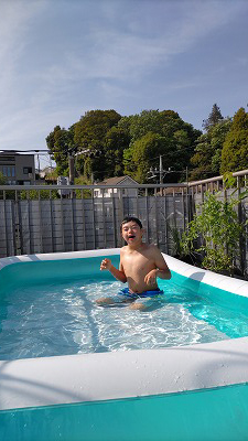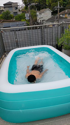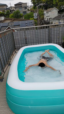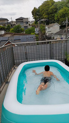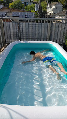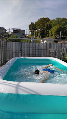 夕方、初プール。 |