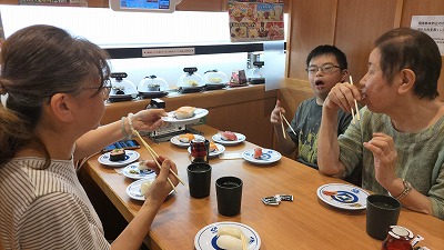 | 立ち寄った園芸店で、トンボを捕まえるお母さん。 |