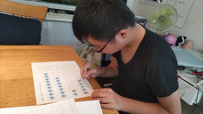 今やっていることは、数字の文字を色鉛筆で塗りつぶしたり、定規で線を引いたり・・・。