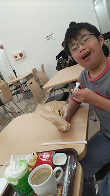 高等部のバスが先行して出発、添乗員さんと遊ぶことができず、怒って叫んでいるようだ。