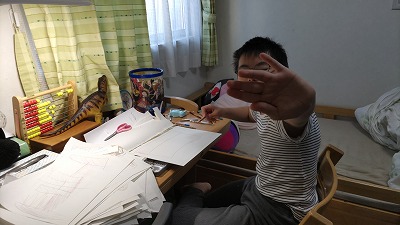 放デイで、書初め。 象形文字? 味があると思うのだが・・・。 |