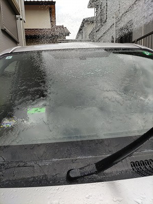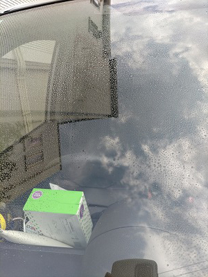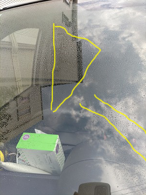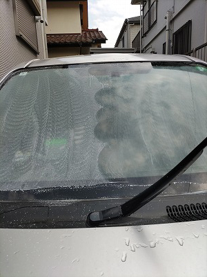 ![]() | フロントガラス、ワイパー傷が酷くて、水の切れが悪い。 試しにスプレーで水してみて。 |