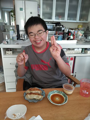 診察後、食べたいものを聞くと、餃子というのでコンビニによる。