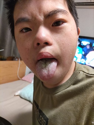 でも喉が痛いのか唾が呑み込めず、桶にペッペッと吐き出している。