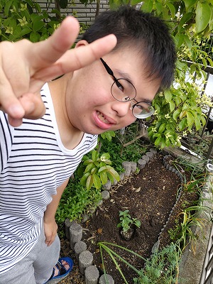 見かねたお母さんが、玄関にヒマワリを植える手伝いだけでもしてきなさい!と。