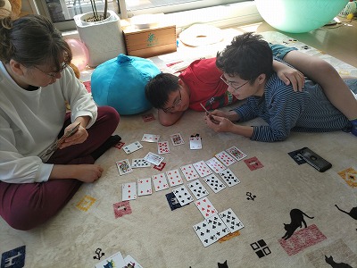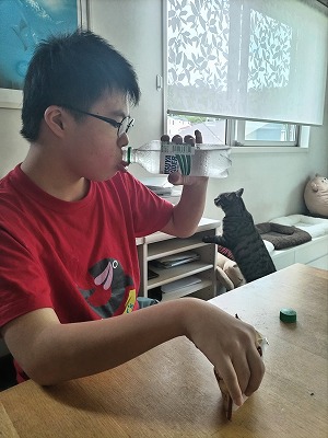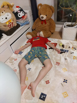 いつものバス停で私に電話→合流→スーパーで買い物(おやつとジュース)。