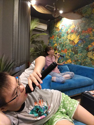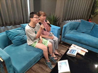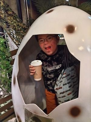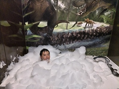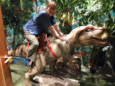 恐竜映画を見て、恐竜ホテルに泊まるというわけ。