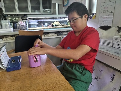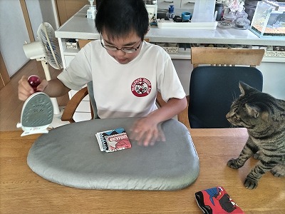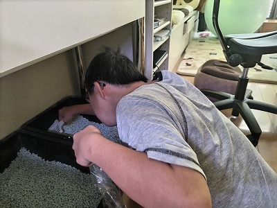今日のお手伝い、ネコのトイレ掃除。