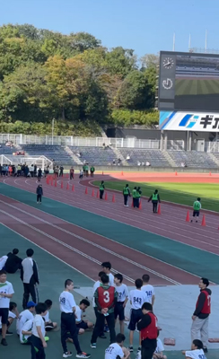 スタジアム一丸となって、最終走者のHを迎え入れたとさ。