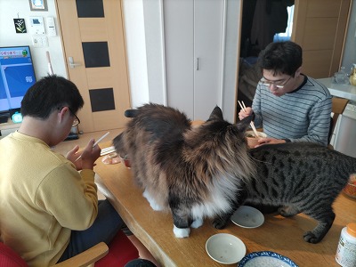 かつお節争奪戦。