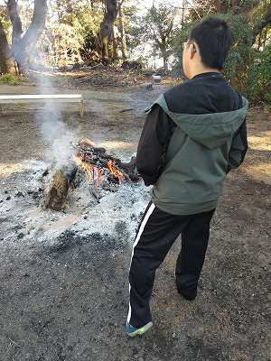 焚火、暖かい。