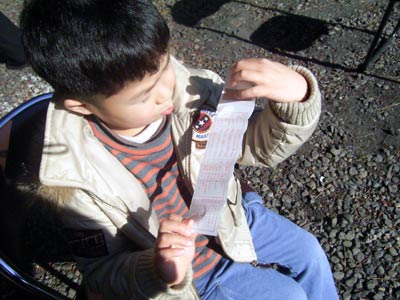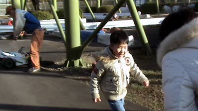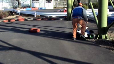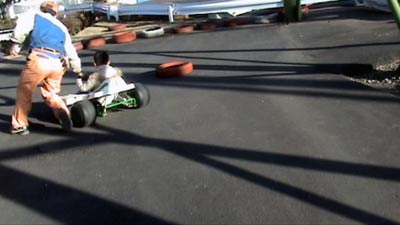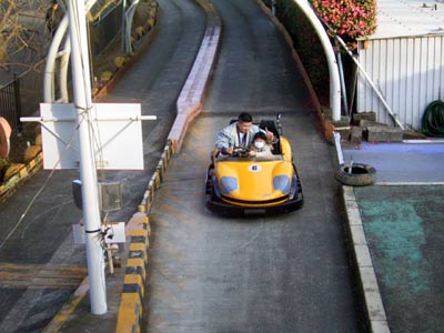 カートに乗りたいというので、 子供でも運転できるのを探してやった。 いきなり逆走で戸惑う係員。 |