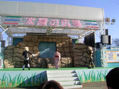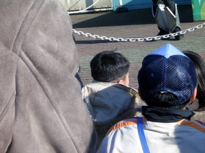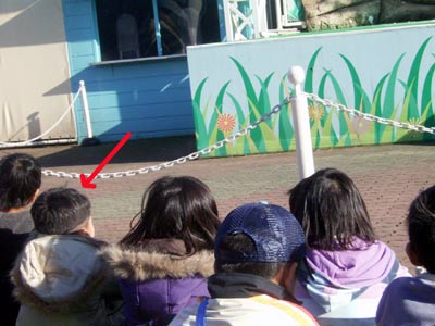 ショー開演時間には、 子供用特設シートの最前列に陣取る。 |