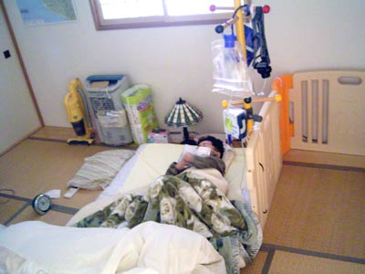 胃ロウからの夜間注入をいつもよりゆっくりしていて、