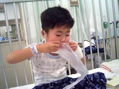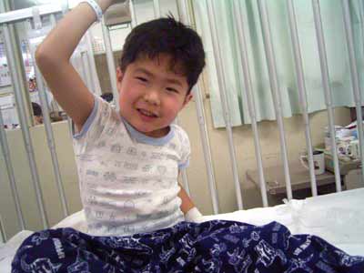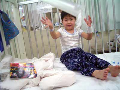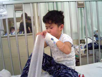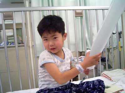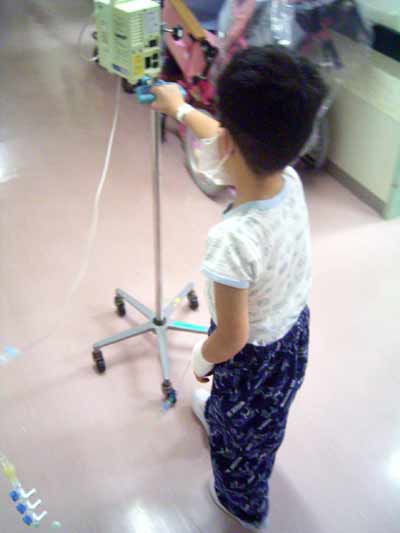 何度も見た、点滴台を自ら押す姿。 でも、見違えるほど大きくなった。 |