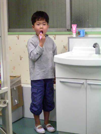 食後の歯磨き。 ずいぶんスマートになったな。 |