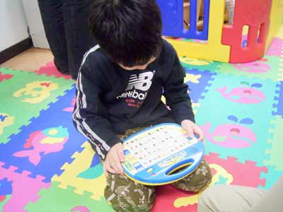 Sは平仮名パネルで遊んでいた。 |